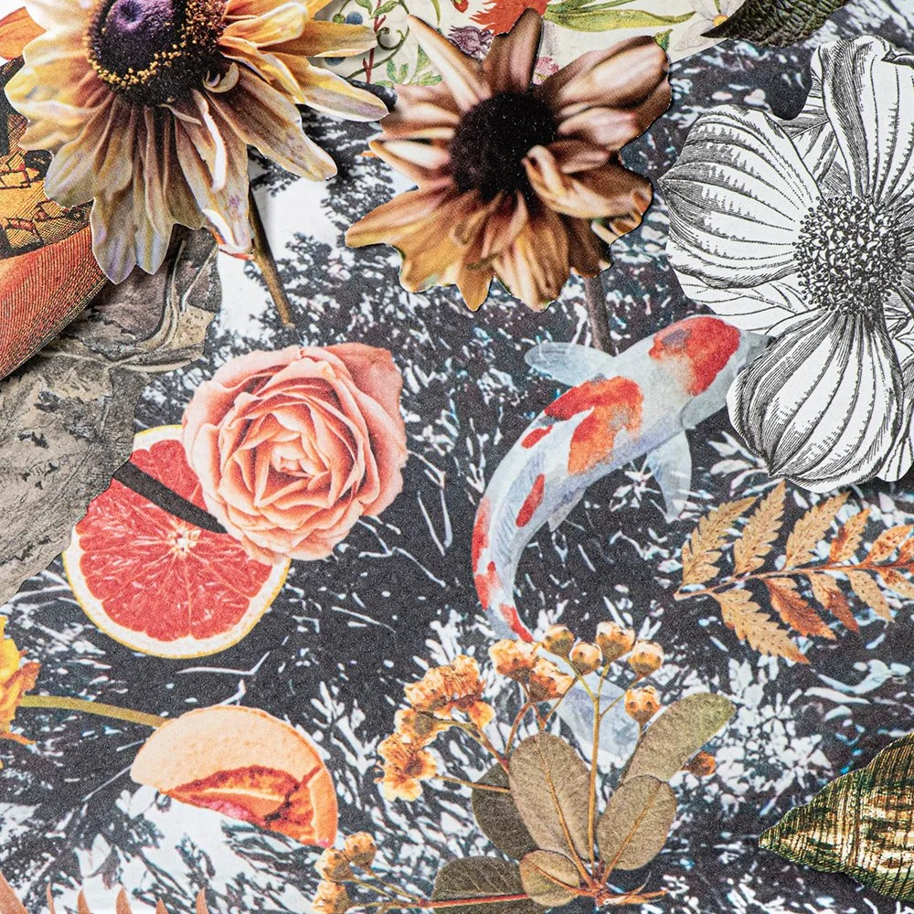 Each original collage is an exploration of color, form, and composition. By reimagining elements beyond what’s found in nature, these works create new visual worlds. Many pieces begin as experimental studies in color and design, later inspiring ideas for future pattern collections.